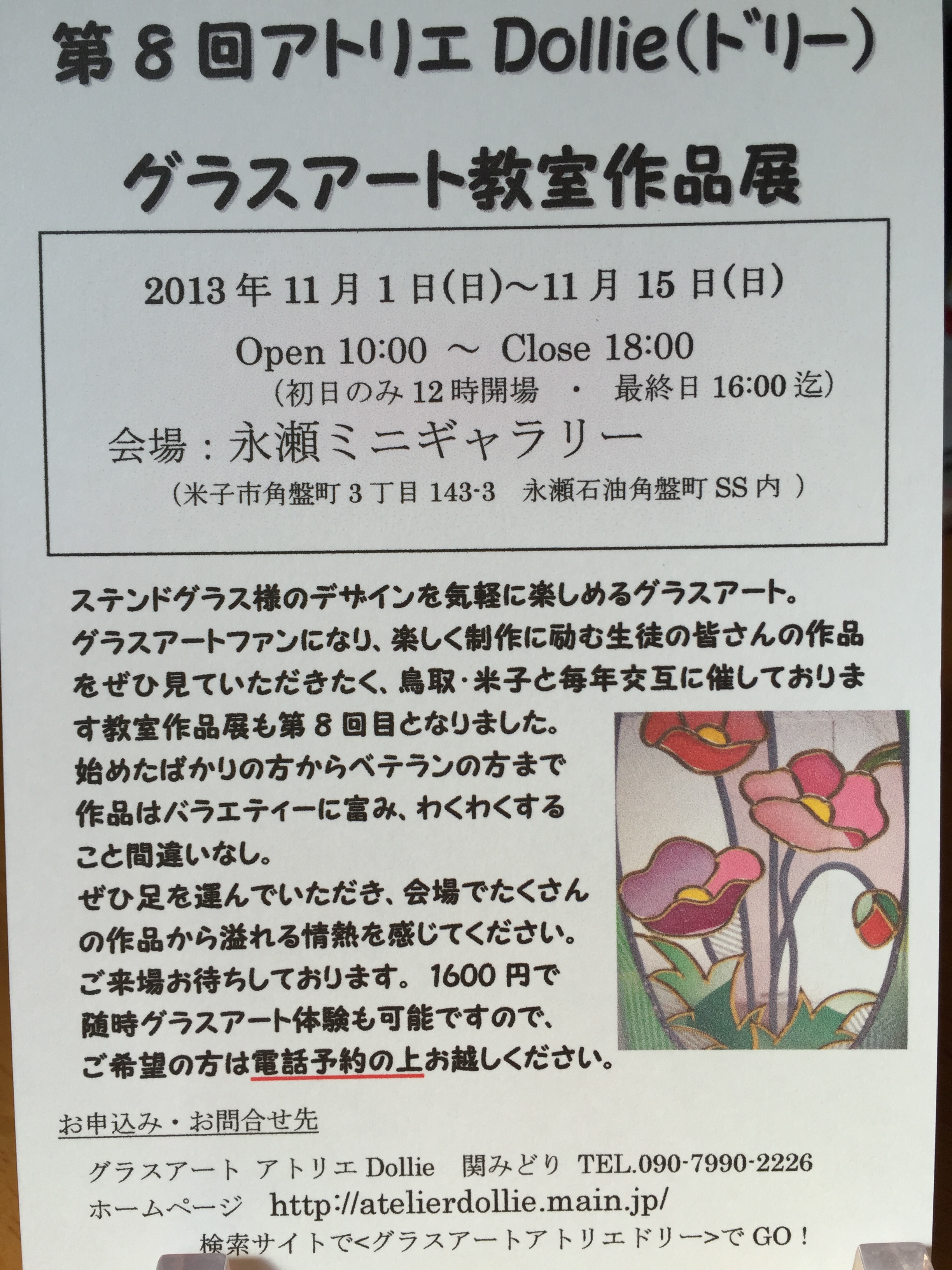 今年は米子市公会堂近くの永瀬石油併設のギャラリーにて11月1日から開催予定です。
